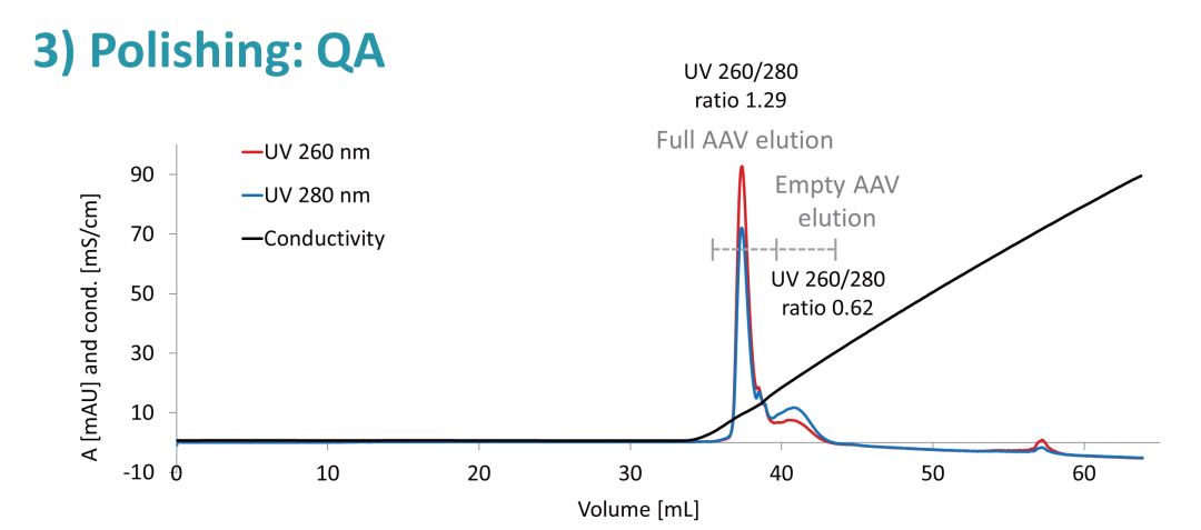 在CIMmultus™QA 阴离子交换整体柱上进行最终精细纯化,该整体柱可以使空衣壳和全衣壳分离。