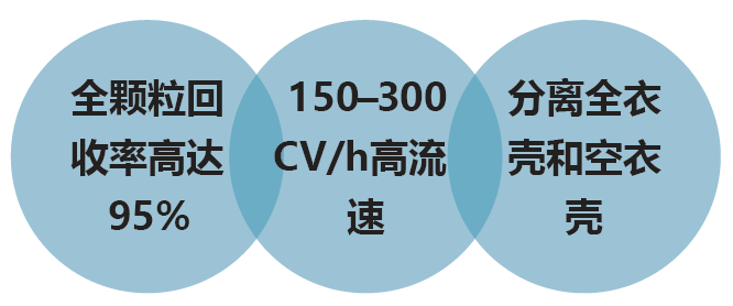 150-300 CV/h的流速与整体结构的低剪切和高病毒容量相结合,减少了总处理时间并提高了回收率。