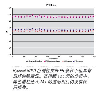经证实,Hypersil GOLD 色谱柱可在高 pH 条件下进行可靠分析。