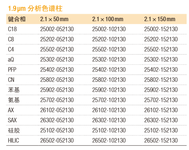 Hypersil GOLD 色谱柱有 1.9μm 到 12μm的多种粒径,可提供具有一致分离和性能的色谱分析解决方案。